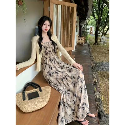 Elegant floral off-shoulder maxi dress - summer 2025 collection, high waist, slimming effect, raj style with straw hat, women's fashion